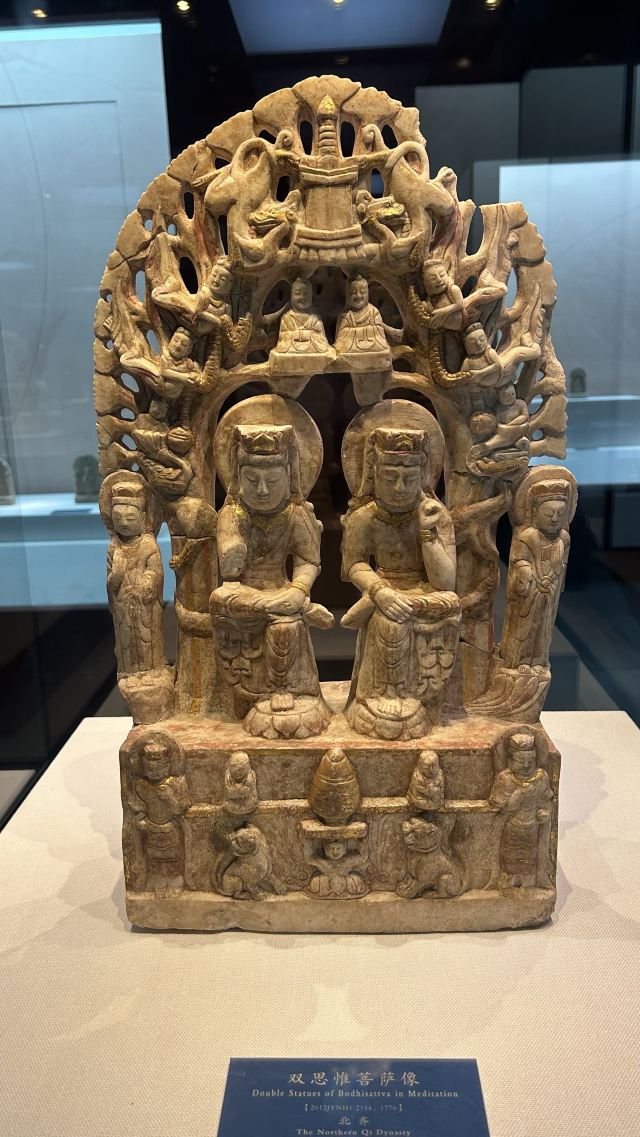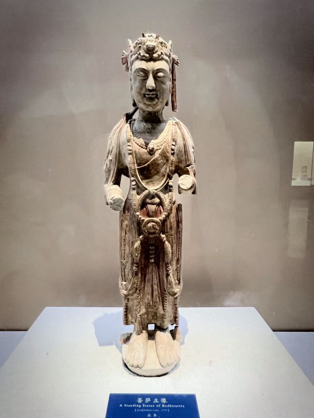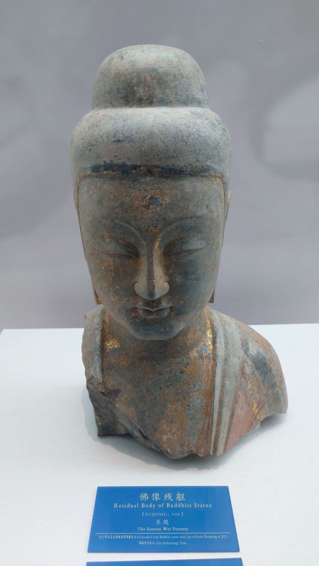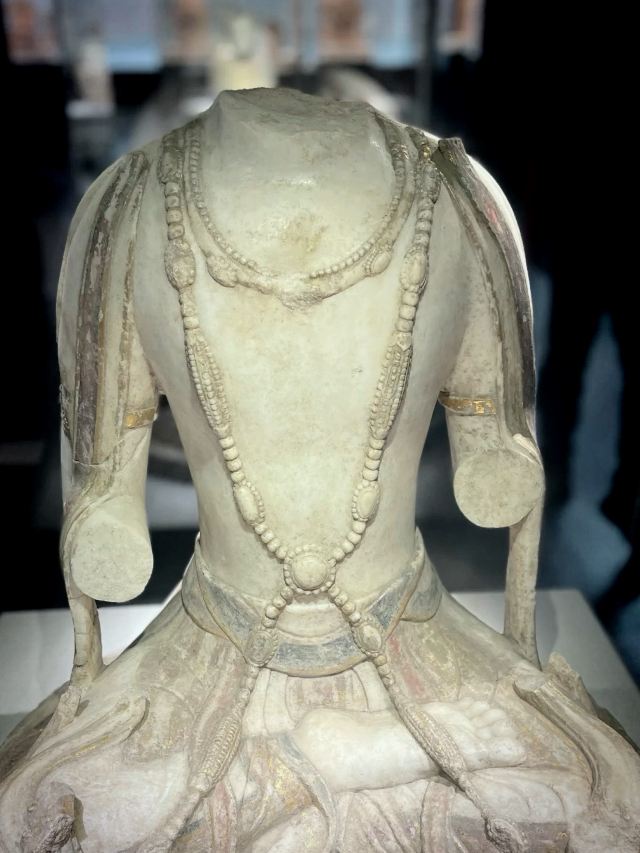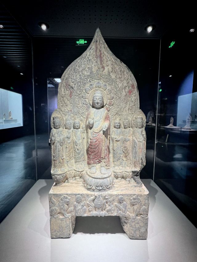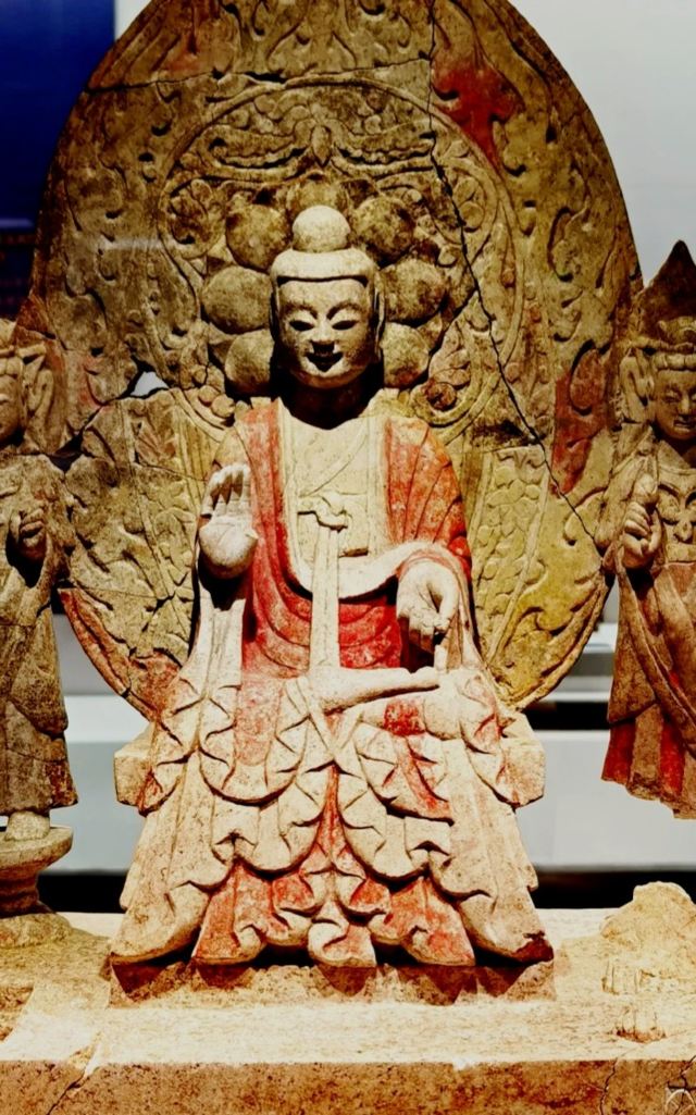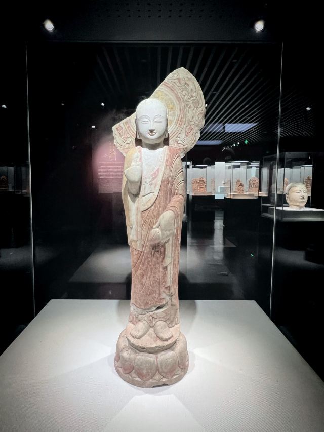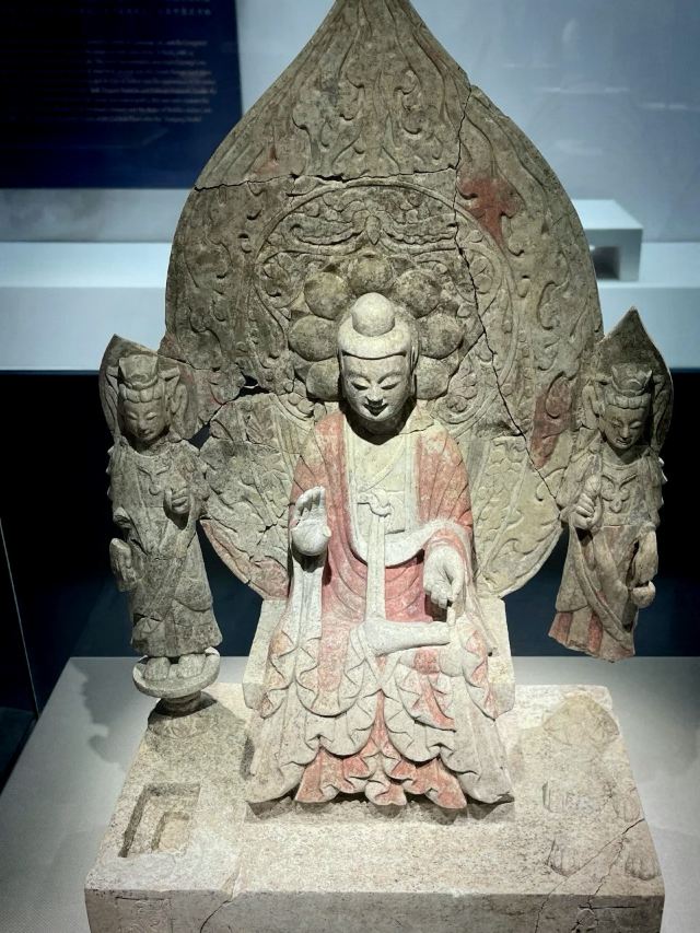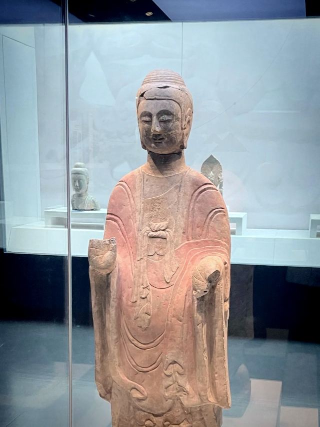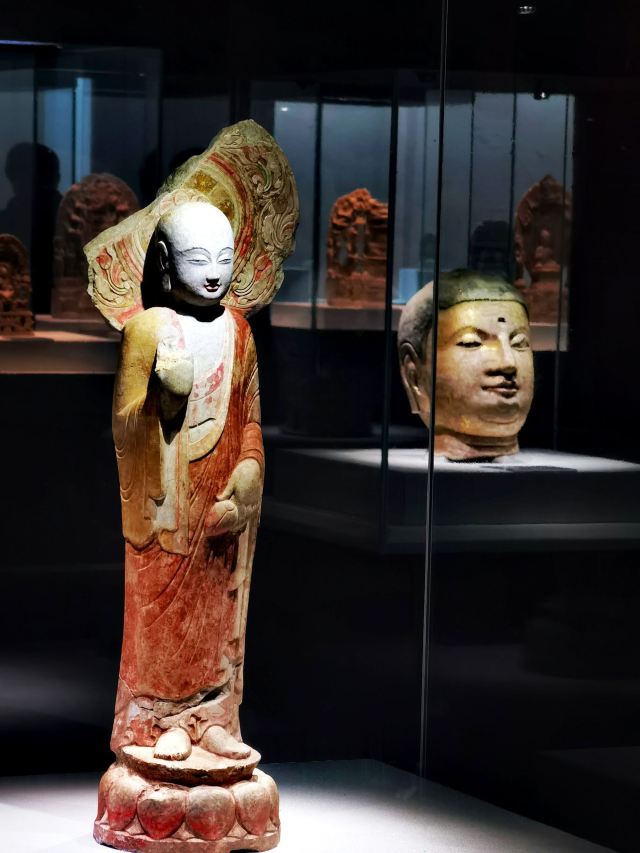 博物馆位于临漳县,这里曾是“三国故地,六朝古都”。一进馆,就被琳琅满目的佛造像吸引。这些造像大多来自2012年发现的北吴庄佛造像埋藏坑,数量众多,跨越北魏、东魏、北齐、隋唐等时期。北魏的佛像“褒衣博带”,飘逸潇洒;北齐的佛像风格多变,柔和内敛,还贴金箔、描彩绘,精美绝伦。