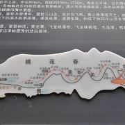 桃花谷是一条谷中之谷,长约4km,海拔约800 m-1736m,高差近千米。谷内奇峰突兀,峭拔雄壮,一条蜿蜒曲折的桃花溪水贯穿峡谷,溪水两岸草藤垂挂,杂木丛林莽莽无际,随山风涌动的绿潮似海水漫卷。