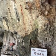 鹅翎寺,亦称福寿寺。距离县城东南3公里,始建于唐朝大宗年间,为荔浦县古八景之一,曰“鹅翎应祷。属佛教文化圣地,是区重点保护文物。已有九百多年历史,寺内建有天王殿、大雄宝殿、居士楼等建筑,内置南无观音菩萨和释迦牟尼等大小佛像数十个,历代官员游人题咏甚多,今尚存摩岩石刻32处,其中唐宋时代13处,明清时代19处。