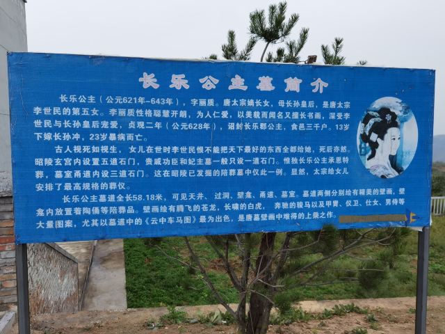 5分 超棒一个牌楼上面写着长乐公主墓,开车下去三四百米直接到门口停。停车免费。墓道很短,也不是很倾斜。基本没有游人。壁画还算比较清晰