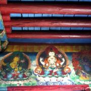 二郎寺位于四川甘孜理塘县毛垭大草原奔戈乡境内,这里是理塘前往稻城的途径之处。到了很大一片经幡的附近,寺庙也到了,就在扎嘎山的脚下,就像神山守护者。毕竟是偏远山区,二郎寺显得非常空荒,庙堂内的建筑和陈列品也显得很陈旧了。