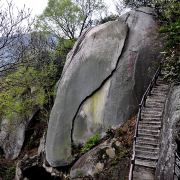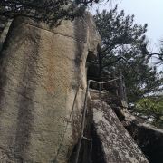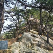 铜锣寨风景区位于霍山县城西南68公里处,主峰海拔1096米,以自然风光为主,奇松和怪石是亮点,人不多,适合喜欢清静、想要爬爬山的游客。游铜锣寨风景区比较好的路线是从前门进山攀登上主峰,然后经铜锣湖、览秀峰从后门出山,如果慢悠悠地玩,5个多小时也够了。登顶的路上可以看到各种怪石,有观音坐莲、铜锣石等,南天门为神奇,岩石中形成一个方方正正的石洞,从背面看外面的岩石门框很明显地像一个“门”字。到达云霄石便是到达海拔1096米的制高点了,铜锣寨风景区的山顶有四个小峰连成山脊,形同鲫鱼背,山脊上的路非常狭窄,是岩石组成的,两侧就是万丈悬崖,山下梯田层层叠叠,运气好的话则能看到云海。在“鲫鱼背”上可以注意一下奇松,有顽强地长在岩石上的千年古松钉石松、成对生长的夫妻松等。铜锣湖水色碧绿,青山倒映在湖中,非常宁静。览秀峰上的风景比较一般,从览秀峰一路向下便是景区的后门了。