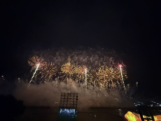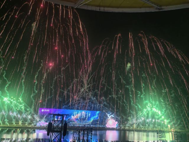 浏阳烟花秀的烟花种类繁多,有各种各样的形状和颜色,有的像花朵,有的像流星,还有的像笑脸,每一颗烟花都美得让人窒息。🌹🌠烟花的绽放时间也很长,整个烟花秀持续了近一个小时,让人流连忘返。