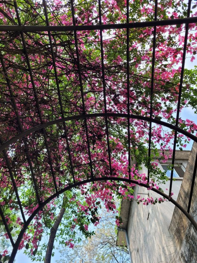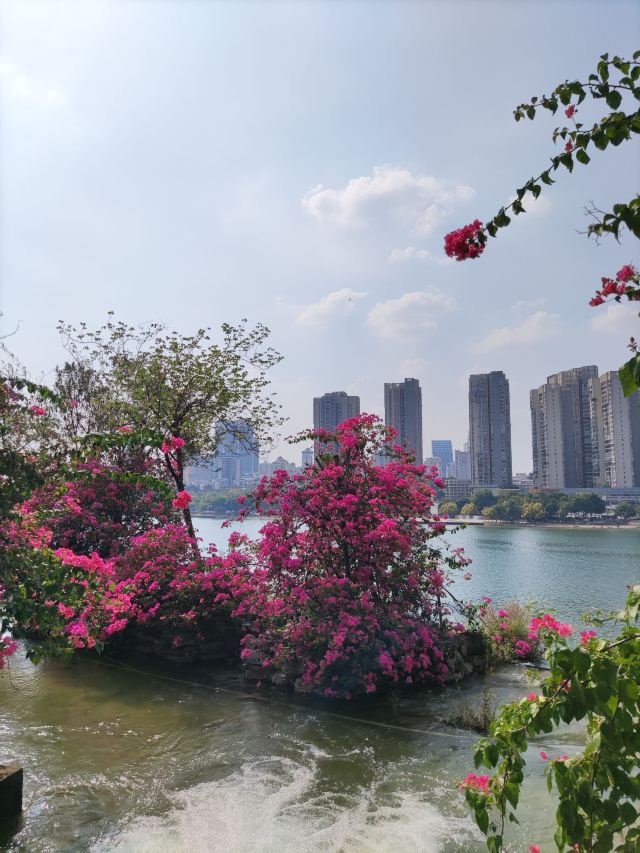 如果大家是在春天来到柳州的话,你一定会到过蟠龙山公园门口,因为蟠龙山公园门口的水南路是柳州春天紫荆花的打卡地,虽然盘龙山公园里面也有紫荆花盛开,但是我今天要给大家推荐的是蟠龙山上的另外一个特色的花三角梅。