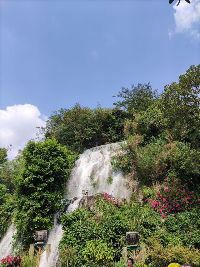 最简单的观赏三角梅的地方就是公园里的瀑布景区,在瀑布周边盛开的三角梅格外的艳丽,但是这里的游人会非常多。