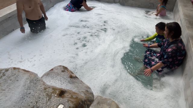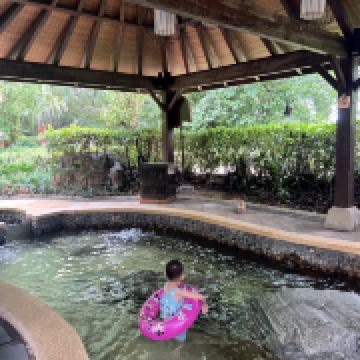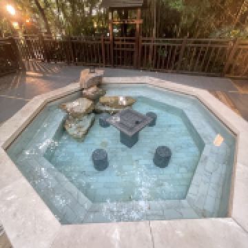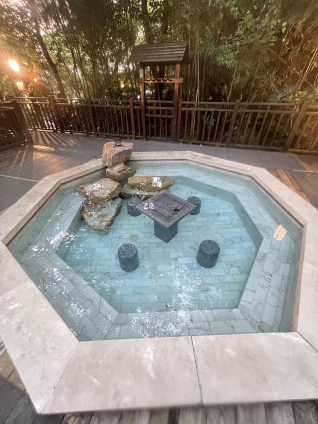 室外温泉除了湖景池,还有“小鱼池”、“五彩池”、以文人雅士名字命名的“文化汤”等。其中,“小鱼池”中的小鱼会来啃咬你身上的死皮,有酥痒的感觉,特别好玩。汤池与汤池间竹林花草是天然的屏障,布局优美的同时具有私密性,适合情侣。