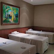 温泉会所一楼温泉区拥有亚洲2座的高科技脉冲温泉,来自南美的玫瑰精盐浴室,配有室内多功能蒸房,冰疗、干蒸及电气钛房。二楼拥有休息大厅、按摩房、儿童乐园、书吧、休息包间、HT港式茶餐厅等,娱乐功能一应俱全;三楼设有SPA中心,14间风格迥异、格调雅致的客房均配有室内温泉池。