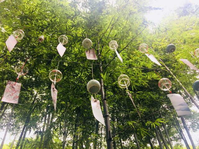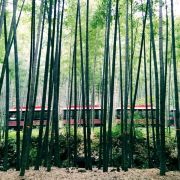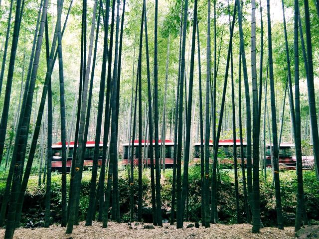 5分 超棒可以步行过去,也可以乘小火车或者观光车过去~~小桥流水,潺潺溪水,风铃阵阵,竹荫连连,木质秋千,温泉体验~~竹文化展览馆~~风景不错,空气清新~还可以乘地轨去鸡鸣村,看大熊猫~~或者乘缆车去山顶一览众竹海