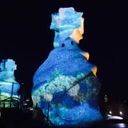 △ 米拉之家的夜场可以看见几个在米拉之家屋顶露台上进行视频映射的投影,利用了这一建筑的独特性,进行一场驶向生命起源之处的旅程。