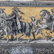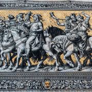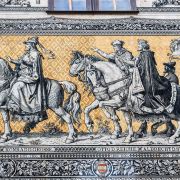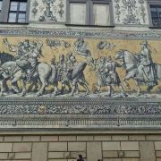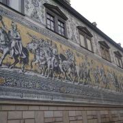 茨温格宫外墙上有一幅101米长的瓷器壁画——王侯出征图,被称为世界较大的陶器艺术品。展示了从1127年到1876年萨克森的三十五位统治者骑马出行的雕像(雕像的下端标有他们的姓名),还有有随行的科学家、艺术家、工匠、士兵、儿童和农民,总共九十四人,人物生动、栩栩如生。