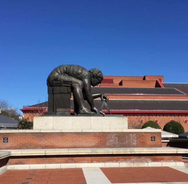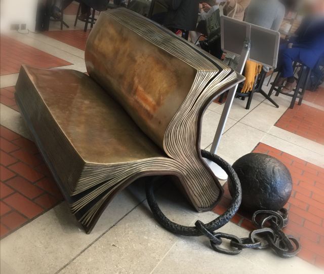 5分 超棒紅磚建築物透露著親切,隔壁的尖塔提醒我還在國外。門口拿著圓規的牛頓雕像很有含義。大廳裡有張熱門的椅子,一本被鎖住的書,是不是不要讓自己被文字侷限? 我一直在想,鎖住的是什麼,書的含義是什麼,值得思考的議題。