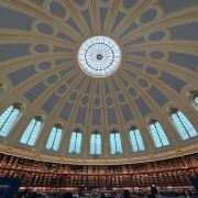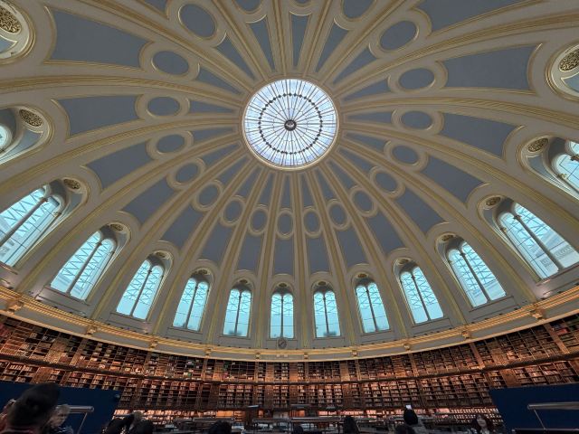 大中庭的中央是阅览室,陈列对公众开放的艺术文献和书籍,游客能在此可近距离欣赏圆顶和古朴的环形书架。阅览室入口处标记着名人名字,以纪念他们曾在这里阅读。大中庭的两侧及上方设置有咖啡馆和餐厅,方便用餐的同时可以俯瞰整个中庭。沿着阅览室的外侧开有博物馆商店,在参观之余,也能购买纪念品。
