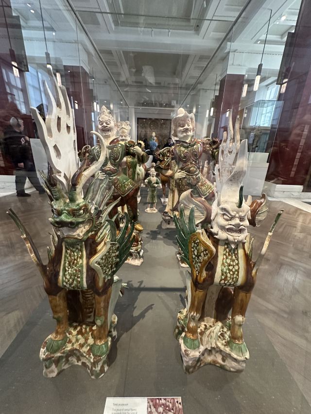 大英博物馆是收藏中国流失文物极多的一个博物馆,藏有25000余件,长期展览的约2000件,布展经过精心设计,按商周的青铜器以朝代脉络梳理,陈列着从商周、秦汉到民国的文物;瓷器的几大名窑按汝、哥、钧、定、官分为不同策展,专业有序。推荐观赏文物还有大型唐三彩、宋磁州窑“马戏枕"、元青花鱼藻纹大盘、明宣德景泰蓝和敦煌壁画佛像等。