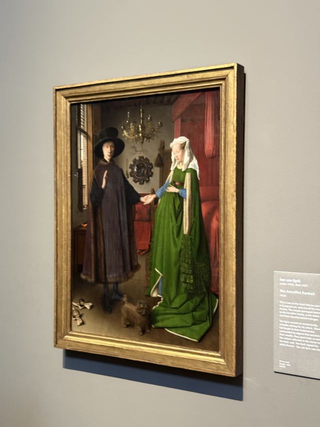 整个美术馆分为东南西北四个侧翼,按年代顺序展出,馆内装饰十分古典华丽。这里终日人如潮涌,建议早点前往入场。参观前可以在正门柱廊入口处或塞恩斯伯里展厅(Sainsbury Wing)二层花4英镑租借一个中文版的导览器,有对40多幅馆藏的详细解说。