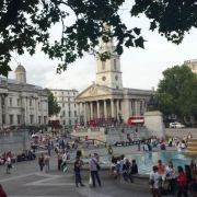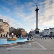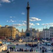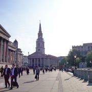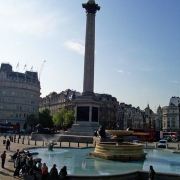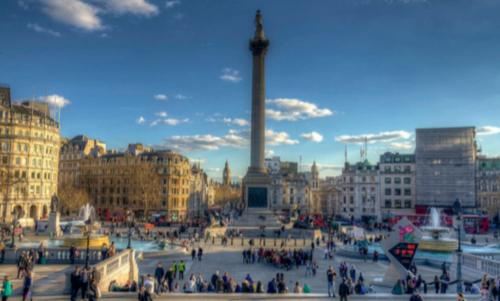 特拉法加广场,位于伦敦市中心,东邻伦敦城,西南有通往白金汉宫的林荫路,北面有国家美术馆,邻闹市索荷区,南邻白厅大街。
