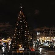 纳尔逊纪念碑、铜像、四个铜狮、挪威王室赠送的圣诞树。