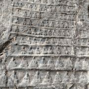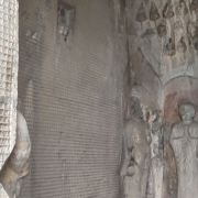 南壁上方有高仅2厘米的小千佛,刻工精细,造型生动。下层第二龛内有两幅精美的佛传故事,上有飞天起舞。窟外门楣处刻有火焰纹,中刻一兽形铺首,雕工精湛。左上方有明代巡按河南等处监察御史赵岩题“伊厥”二字。