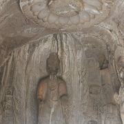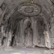 5分 超棒莲花洞是龙门石窟内的一个洞窟,建造于公元525—527年,因窟顶刻有一朵巨大的莲花而得名。洞内正壁造有一佛二弟子二菩萨,主像为释迦牟尼立像,穿着褒衣博带式袈裟,衣褶简洁明快。洞内还有龙门石窟中最小的佛像,仅有2厘米高,位于南壁上方,生动细致,栩栩如生。