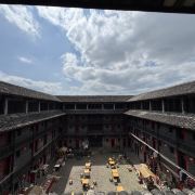 4分 满意整个江西最高的围屋,简直是军事堡垒。15米高的墙体由坚硬的花岗岩和青砖铸造。只有一个进出口!136间房,四分之一放粮食,即使围困可以守一年