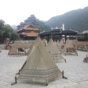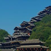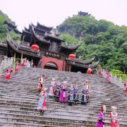 彭水县乌江左岸的蚩尤九黎城,以苗族始祖蚩尤文化为主线,集中展示了苗族的传统文化和建筑,充满了浓郁的苗族风情。