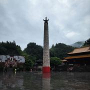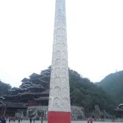九黎神柱是苗族的象征之柱,采用汉白玉雕刻而成,高24米,神柱上雕刻苗族古歌里崇拜的三十六堂鬼、七十二堂神雕像,是世界上高度最高、直径最大、雕刻鬼神最多的少数民族图腾柱。