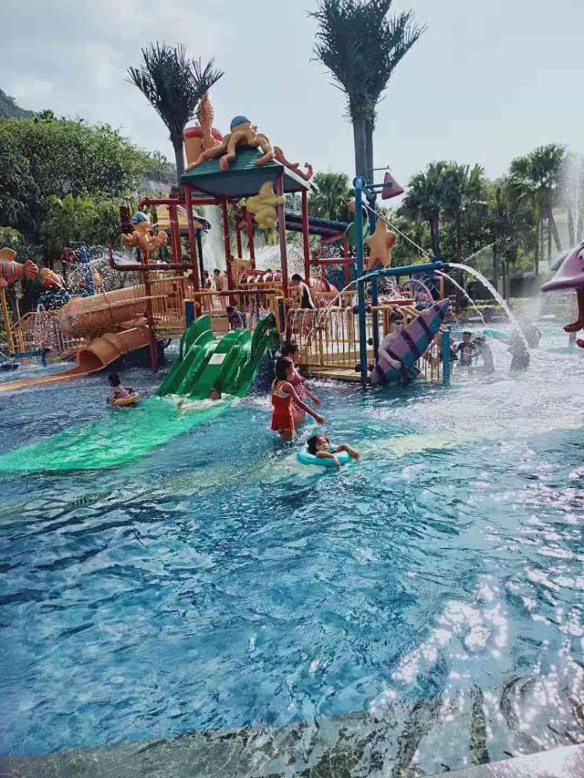 5分 超棒今年学会游泳,解锁了水上项目,买的188联票包含水上乐园和温泉以及飞龙漂漂。因为不知道温泉和水上乐园是一起的,虽然有提前问,但是前台没有告知清楚,最后是先去了水上乐园和温泉,再去漂流,本来是想水上乐园再漂流再泡温泉的。但是没关系,玩得很开心。建议后来的玩家可以先漂,并且选择飞龙漂漂会比较值,因为比较惊险,喊的嗓子都哑了那种。当然可能是因为我第一次玩这个。漂完再去玩水泡温泉解乏。对了,里面有泳池,需要带泳帽才可以下水,一定切记!餐厅有提供免费水果和咖啡饮料,记得,就在冲浪池后面,水果是按时间提供不是随时都有!手环是可以买东西支付记账的,因此不带手机也可以,因为很多惊险的项目都不能带手机首饰!里面吃的东西不多但是平价!漂流会湿身,水很凉,记得保暖措施,多带一套衣服去换,但是里面柜子要20元租金,50的押金。给后来玩家的小建议,希望有用!总之玩得很开心,会再回头的。