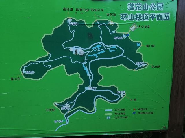 - 莲花山木栈道:座落于半山腰,全长3.7公里,宽3.5米,于2011年5月1日建成。采用栈道桥形式,环绕莲花山一周,宛如一条玉带,荣获“中国人居环境范例奖”