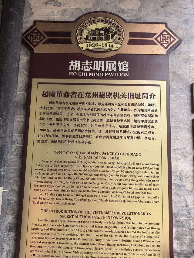 5分 超棒在龙州展示胡志明在中国活动的展览,记录了当时抗日抗法抗美战争的历史。