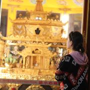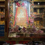5分 超棒藏传佛教的传承在西藏皆皆可见,昌珠寺就是其中之一。昌珠寺位于山南雅砻河东岸的贡布日山南麓,距乃东县约二公里,属格鲁派寺院。建于松赞干布时期,据说文成公主曾在该寺驻足修行。帕竹政权时期,昌珠寺进行大规模的维修和扩建。昌珠寺在其晚期归属格鲁派。相传此地在建寺前有一恶龙,被松赞干布化身大鹏降伏后才得以建寺,故得名。重要建筑有大门、“乃定学”、措钦大殿名“乃定当”,大殿主像是莲花生。措钦大殿东西长45米,南北宽29米,里边有天井天棚,经堂有柱64根,主要佛殿三间,形式与拉萨大昭寺差不多。殿内有12座佛堂。到这里打车比较方便,公交车还要走一段距离,这里是收门票的。