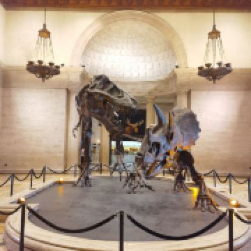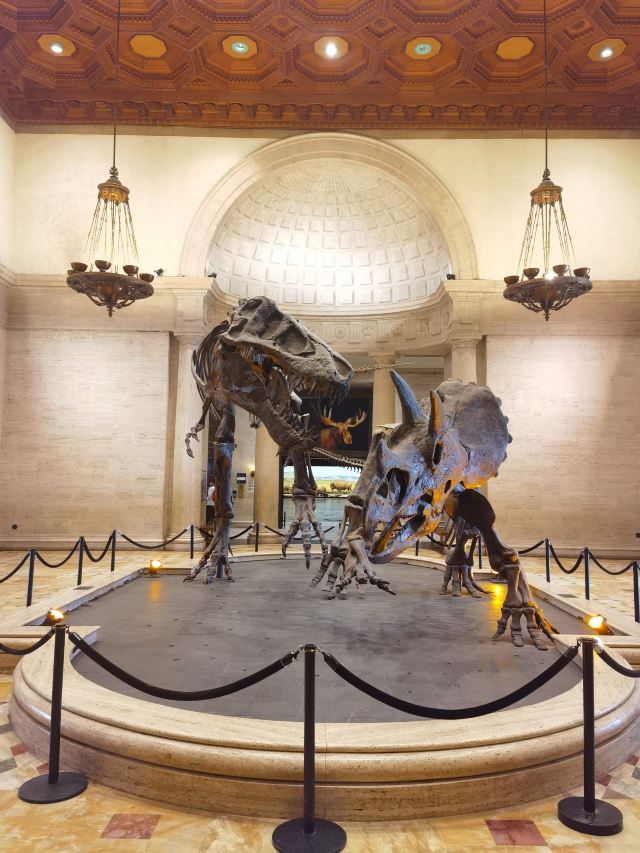 恐龙馆” (Dinosaur Hall):*镇馆之宝!拥有超过300件真化石,包括**全球唯一的霸王龙“托马斯”成长系列化石(幼年、亚成年、成年),直观展示恐龙成长之谜。震撼的三角龙“命运”骨架**(北美发现的最大最完整之一)和迷惑龙骨令人屏息。