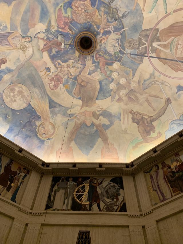 走进天文台,这里的每个展厅都用生动有趣的方式展示天文知识,你可以看到悬挂着的八大行星模型和天花板上的精美壁画。顶部的球幕影院模仿天空而建,可以仰靠在座椅上,360度欣赏有关天体演变的影片,浩瀚宇宙也变得触手可及。