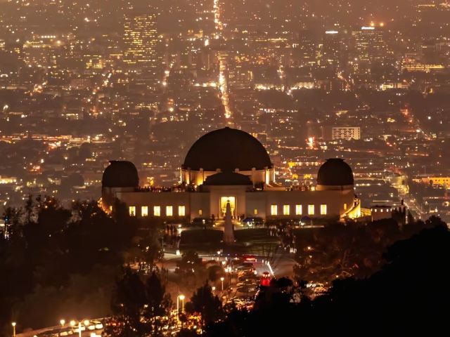 这座1935年落成的装饰艺术建筑,悬浮在好莱坞山腰,像一具巨大的天文仪器对准洛杉矶盆地。免费开放的设定,使它成为这座城市最慷慨的观景平台。