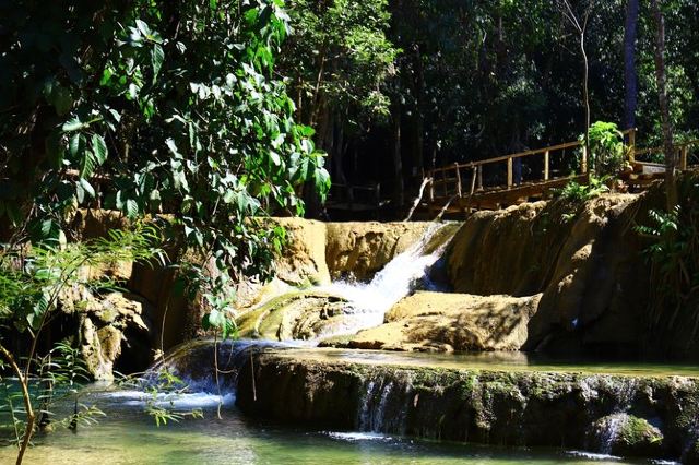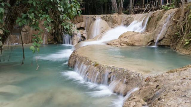 赛瀑布位于会塞河和南康河的汇合处,以多层石灰岩岩层为特色。它比光西瀑布更宽阔,倾泻而入的水潭数量也更多,激流中形成了层层叠叠的多层瀑布。