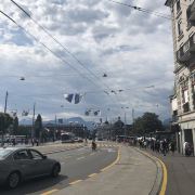 卡佩尔廊桥北侧不远就是有名的天鹅广场,是老城区的入口。主干道从广场前经过,多条公交线路经停。靠湖的一侧树荫下设有许多游人休息的椅子,湖边熙来攘往的行人、观光客川流不息,游弋在湖上的天鹅令人迷恋。