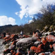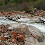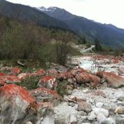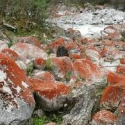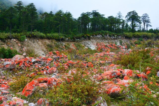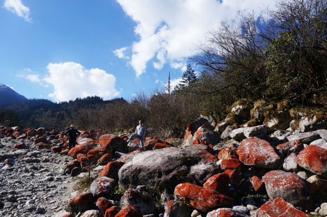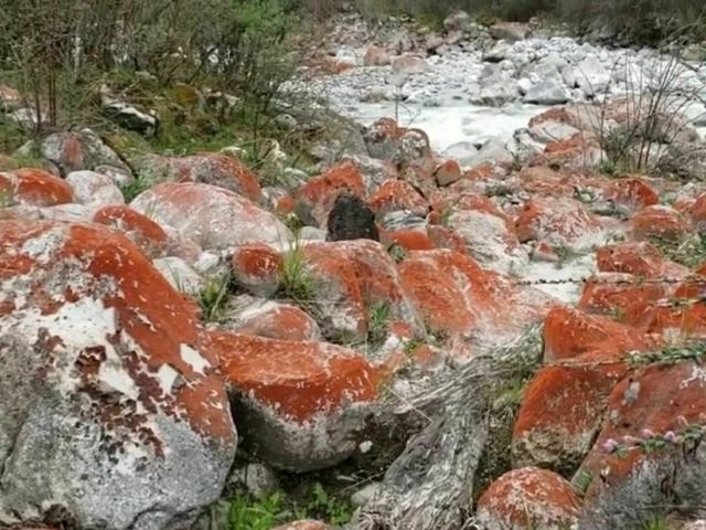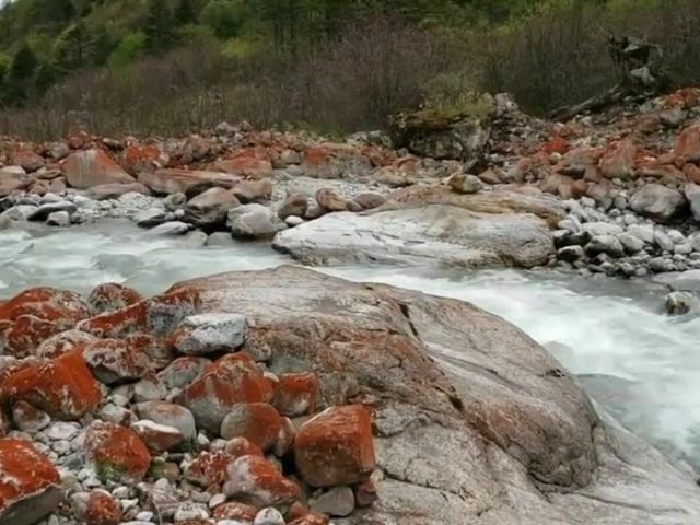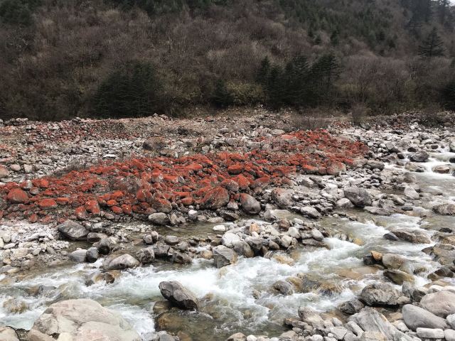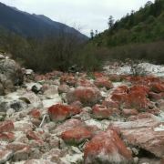 5分 超棒雅家埂两河口地带的红石滩是世界上规模较大的红石滩之一,石头上生长的呈铁锈红的物质是一种极稀有的藻类(地衣的复合体),在湿度、温度、气候适宜的情况下,这种植物就会在岩石的表面自然生长,大概四五年后就会死亡,然后再生。雅家梗的红石是大自然赠送给贡嘎山地区最珍稀的物种之一。