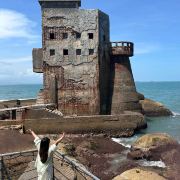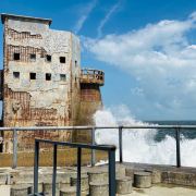 位于中国广东省汕尾市的海上古堡,是一座历史悠久的军事防御遗址,建于清朝时期,旨在抵御海上入侵和保护沿海居民的安全。这座古堡坐落在海边的突出地带,地理位置优越,便于监视和防御海上来犯之敌。古堡的建筑融合了西中方的设计元素,采用坚固的石材建造,墙体厚实,设有炮台、瞭望塔和士兵驻扎的营房。这些设施体现了当时先进的军事防御理念和工程技术。如今,这里已被改造为网红打卡点 “古堡咖啡”。游客可以在这里一边品尝咖啡,一边欣赏海景。古堡周围环绕着岬屿和礁岩,海浪拍打在礁石上,气势壮观。斑驳古朴的墙面和锈迹斑斑的铁窗,透出历史的厚重和古雅,让人仿佛穿越到了中世纪。无论是时尚网红摆 pose,还是情侣拍摄婚纱照,这里都是理想之地。它不仅是汕尾的一张文旅名片,更是游客感受滨海风情与历史韵味的理想去处。