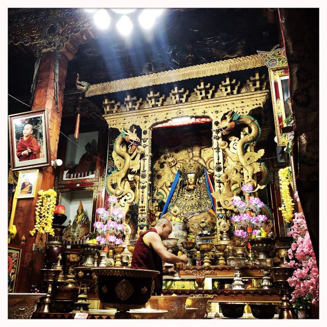 5分 超棒这是一座超级牛却超级低调的格鲁派寺院啊!(网上居然没有什么图片,被惊到了,格鲁派的师父们光学习光修习都不宣传啊!)这里的历史悠久、唐卡壁画牛逼到闪闪发光了,好多人却不知道,太可惜了!现在在建的30多米的释加牟尼大佛明年终于要开光了,希望有缘的亲也可以去朝拜!超级震撼的啊!寺院朝拜是不能拍照的....(我是询问了师父准备私藏的,结果发现携程都没有这家寺院的图片所以我还是决定放上来,希望有更多人可以知道这家低调牛逼的寺院)觉沃佛殿在大殿的后面,可以找师父开门朝拜哦!(只要说明是朝拜,师父会给开门的)大殿(师父们上殿的地方周围全是幕布盖着超级美的壁画,看图片)这里供的释加牟尼、宗喀吧大师三尊、吉祥天母、大威德金刚、绿度母.......随见红嘴乌鸦、山花烂漫、这里来了就不想走呀!希望有更多的人能领略到这里的神圣和美好!