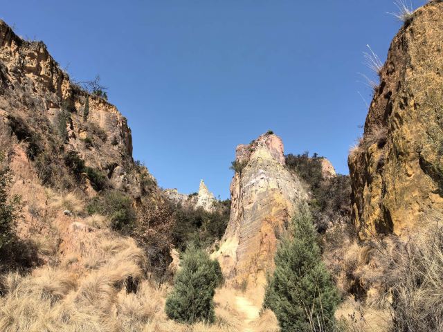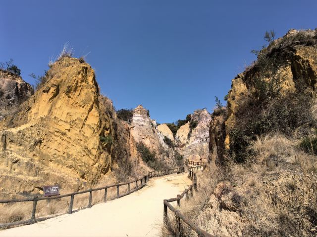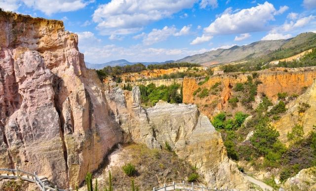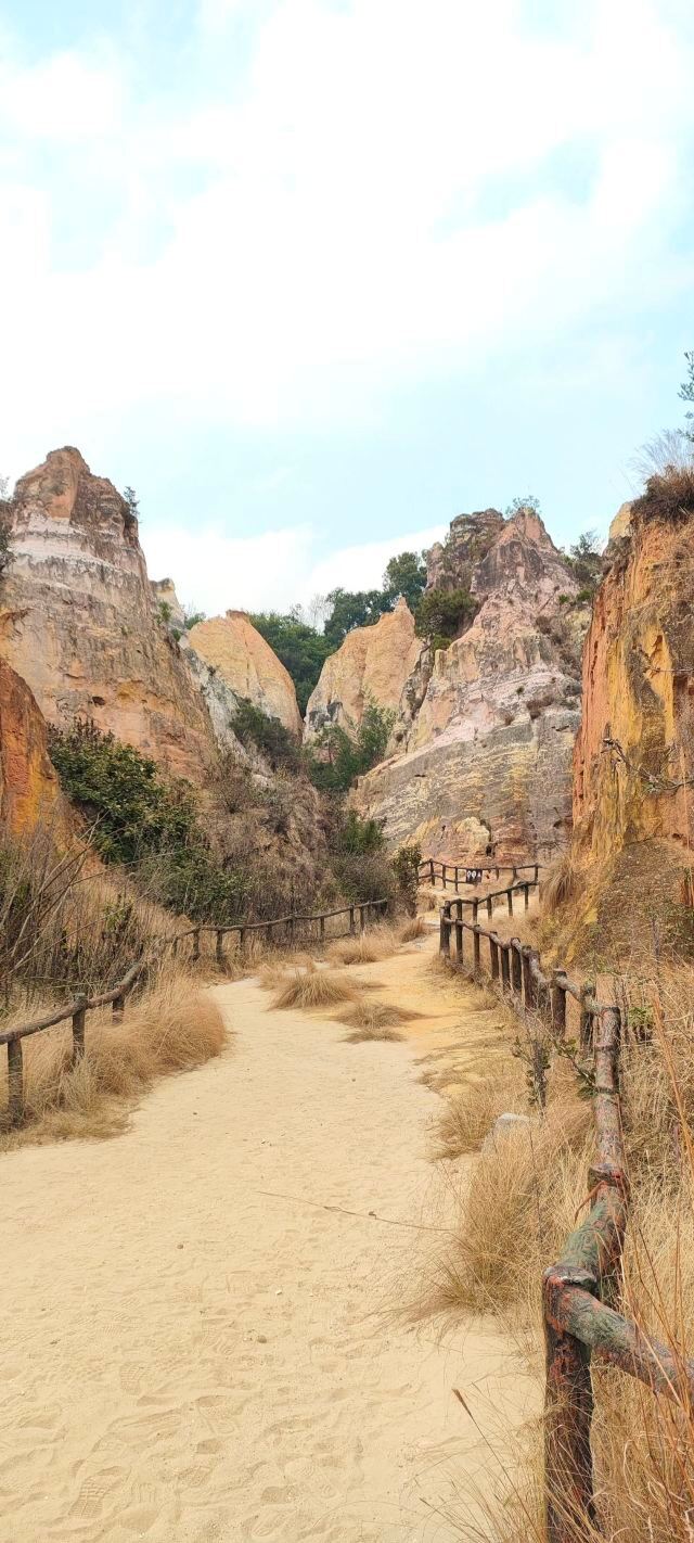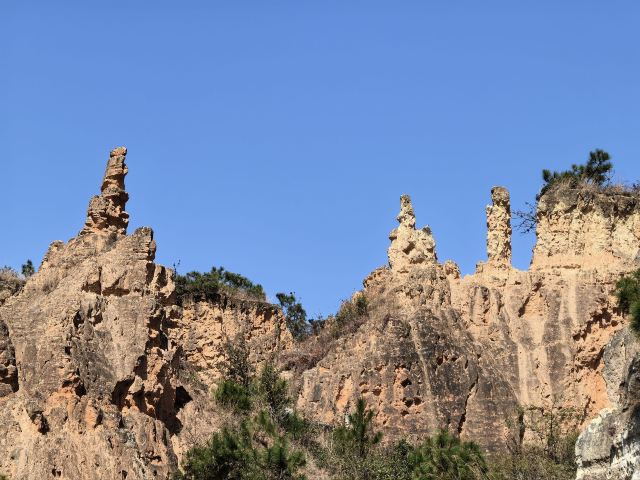 陆良彩色沙林位于陆良县城东南面18公里处,是一处以天然沙柱、沙峰为主要看点的景区。陆良彩色沙林和与路南石林、元谋土林并称“云南三林”,但这里没有路南石林那么出名,游人相对较少,是个可以静心赏景的地方。