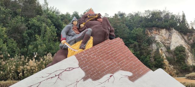 陆良彩色沙林是由含矿物质的砂岩风化而成,游客仔细观看会发现沙林随着日照光线变幻不同的色调,有红、白、黄、灰、黑等好几种颜色,拍出来的效果变幻无穷。特别是傍晚的时候,夕阳下沙林的层次感更为明显。看完沙林可以去沙雕区,那儿展示了一批当年举办国际沙雕比赛时留下的沙雕作品。内容包括白雪公主、老人与海、源氏物语、钢铁是怎样炼成的……走在这些巨大的沙雕人像和宫堡之间,会感觉自己是小人国来的人一样,很多游客在这里合影留念。