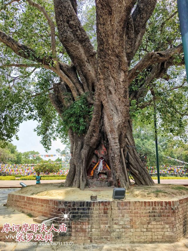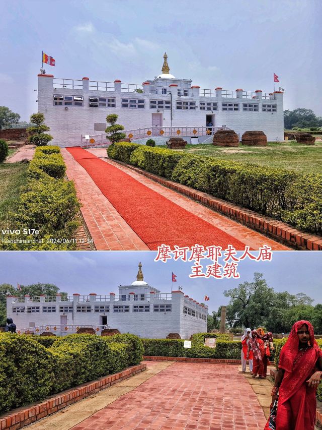 2、摩诃摩耶夫人庙便是释迦牟尼诞生地,前563年(春秋时期周灵王九年)北天竺迦毗罗卫国的摩诃摩耶夫人在回娘家时,路过此花园,被美景吸引,便在此住下,次日临盆在此生下乔达摩•悉达多,因其是释迦族人,后尊称释迦牟尼,意为“释迦族的圣人”。此后信徒在此地建庙,后庙毁只剩地基,眼下寺庙区是1990年复建,历时3年完成,自外向内依次有: