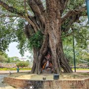 这座于1986年开始兴建的佛教的圣园不仅用来纪念佛主释迦牟尼的诞生,也是当代佛教复兴的基地。在多次的勘查中发现,蓝毗尼园开始是善觉王为其夫人蓝毗尼建立的花园,随后因摩耶王后在此产下释迦摩尼而成为闻名的佛教名地,蓝毗尼园内有摩耶夫人祠、阿育王石柱、古代佛塔等世界遗迹,同时还有世界各国修建的佛寺,四周巨大的菩提树随处可见。