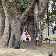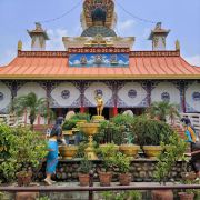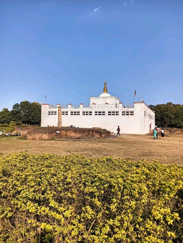 3分 不错蓝毗尼,是佛陀的诞生地,进入整个园区,首先是一尊佛陀诞生时太子金像,继续前行,到达摩耶夫人庙,需要购买门票,本地尼泊尔人20卢币,印度人80卢币,中国人及外国人需要700卢币,购买门票时,如果第二天还想继续进来,可以选择12天有效的门票1000卢币。门票检票口,会提示往右边去寄存鞋子,必须要脱鞋赤脚进入。内里是一座白色的建筑,顶部有一座小塔,就是摩耶夫人庙,里面是以前的建筑残留,有铁架沿四周一圈,供信徒游人参观巡游,中间有一堵旧墙,上面有古代的摩耶夫人手扶无忧树,右侧降生释迦太子的石刻碑,下面底部有佛陀的脚印,佛教徒可以进入专门的一侧过道,进行朝拜诵经祈祷。庙堂前有一个大水池,及一棵粗大的菩提树,右侧有阿育王时期立的石柱,四周是之前的建筑遗迹,及树林草坡。在以摩耶夫人庙为中心的四周,是各个佛教国家修建的寺庙群,星罗遍布,各具特色。中国的是中华寺,规模较大,红墙黄瓦,重檐歇山式佛殿。
