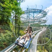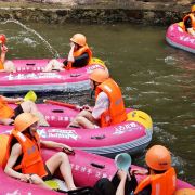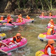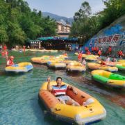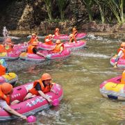 2019年,全新升级的古龙峡漂流河道融入亚马逊部落场景,融入猩猩岛、鳄鱼潭、恐龙谷等闯关体验,是情景式漂流项目。