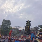 火炉分上下两层,左右齐发,此起彼伏,非常震撼,同时还有火壶表演,高速旋转,相当刺激。最后是舞龙表演,一条全身都喷着火的火龙在舞台上不停地舞动。