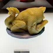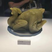 - 广宁玉雕白切鸡:这是用广宁玉雕刻而成的白切鸡,广宁玉是我国五大名石之一,这只“白切鸡”颜色逼真,细节更是精雕细刻,连鸡皮上的细小毛孔都清晰可见。