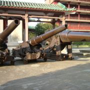 “千万劫,危楼尚存,问谁摘斗摩霄,目空今古;五百年,故侯安在,使我倚栏看剑,泪洒英雄!”这是在广州越秀山上广州博物馆内,建于明代的『镇海楼』上的对联。明洪武年间,由永嘉侯朱亮祖建造的镇海楼,楼高五层,矗立在羊城中心的越秀山上,笑看风云五百年。