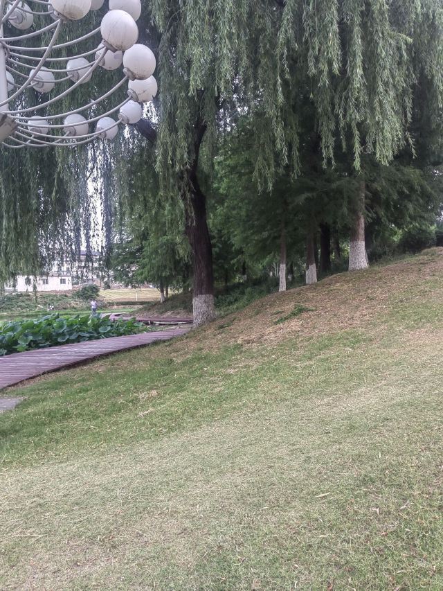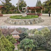 ④梅园:梅花花季在冬季,目前只有一片绿色,园中一座艳丽的六角亭子很显眼。