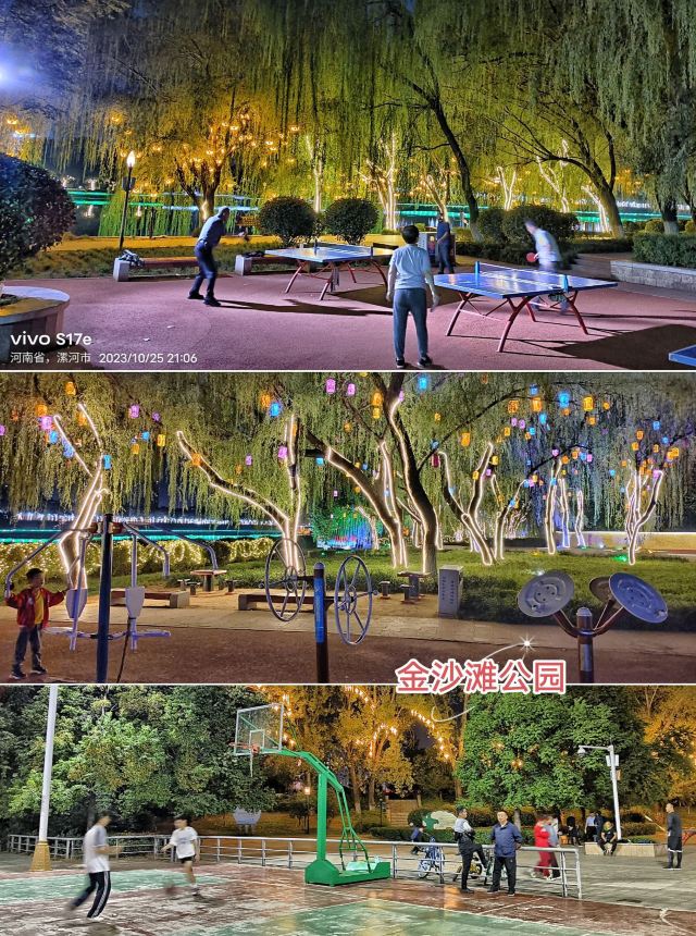 景区的夜景也是不错的,在黄色、绿色、青色为主色调的灯光勾勒下,形成一个错落有致、色彩鲜明的灯光效果。风景区内还经常举办各类活动,如:幸福漯河大家跳、环沙澧河自行车比赛、周末男子篮球联赛等等。