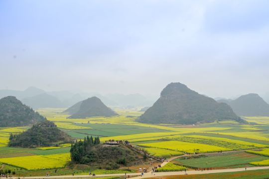 罗平县位于曲靖市东部,不同于其他地区的崎岖,罗平的地势颇有几分水乡的风范。作为一个传统的农业县,这里世代种植的油菜花吸引了海内外广大旅行摄影爱好者。每年花期,罗平县城便深陷在一片油菜花的海洋里,80万亩油菜花竞相开放,颇为壮观。