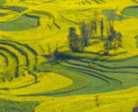 进入 九龙 瀑布群景区,一片开阔地上的油菜花已经开始绽放。